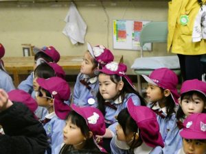 みんな集中してお兄さんお姉さんの話を聞き、クイズにも参加しました![]()