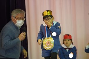 年長組のお当番さんのはじめの言葉で誕生会がはじまります![]()