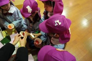 朝から「いつ中学生のお兄さん、お姉さん来るの?」とワクワクしていた年長さん![]()