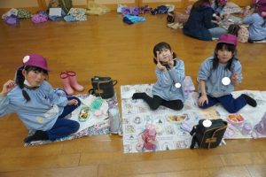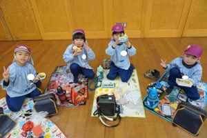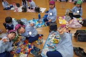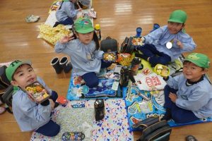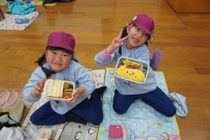 大好きな保護者の皆様が作ってくれたお弁当をみんなで自慢をし合いながら