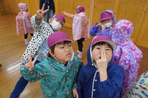 お天気は悪かったのですが、雨に負けない年長さん!!