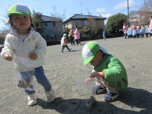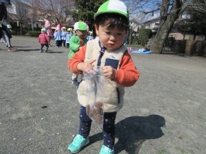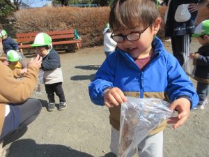 たくさん拾うことができると、「いっぱい集まったよー!」ととても嬉しそうに教えてくれました![]()