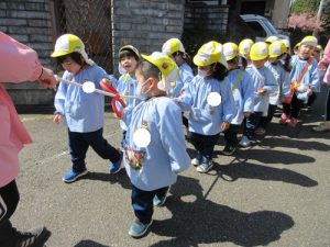 今日はみつばち組とちょうちょ組合同で、【お散歩】をしました![]()