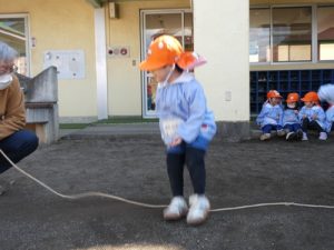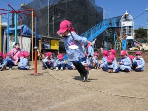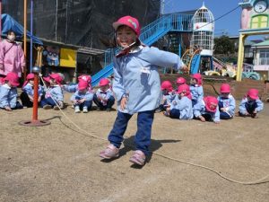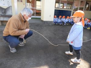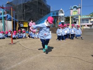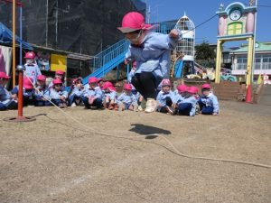 今回の園長チャレンジは、「ヘビのように見立てた縄跳びを5回ジャンプする!」というチャレンジです![]()