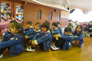 修了式では、たいようのこようちえんの歌を歌ったり、