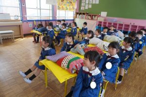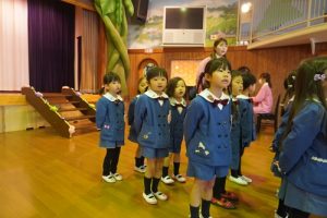 修了式では、たいようのこようちえんの歌を歌ったり、
