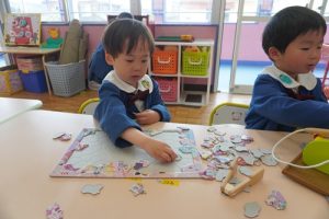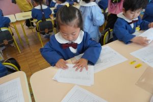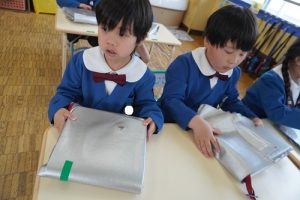 クラスに戻ってからは、新しい教材を通園バックに入れたり、帰りの支度をしたりしました!