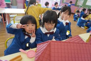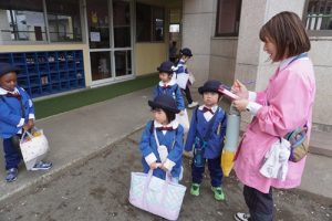 明日は入園式になるので、在園児のみんなの次の登園日は、