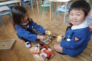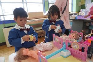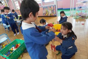 たくさん覚えるものがありましたが、順調に支度をし、保育室で遊びました![]()