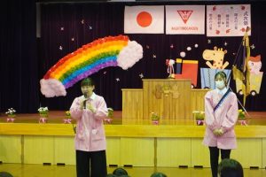 元気に朝の歌と太陽の子幼稚園の歌を歌いました![]()