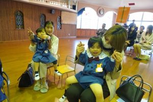 先生たちの手遊びで子どもたちの緊張した気持ちが少しずつ解れていく様子が見られました