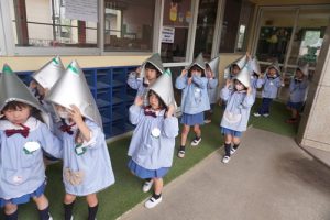 靴に履き替えず、上履きのまま逃げることや、「おはしも」を守って避難することなどを覚えました![]()