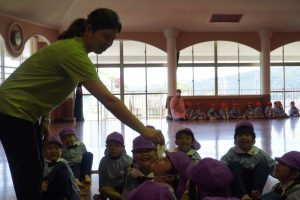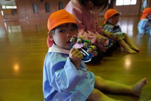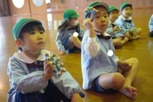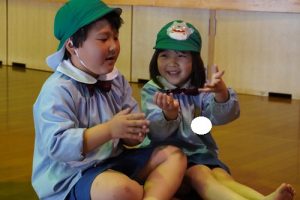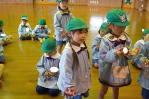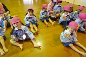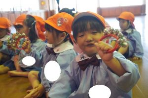 鈴を使って「ちゅうーりっぷ」・「おはながわらった」を歌いました