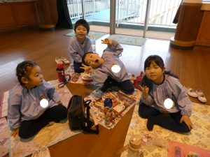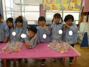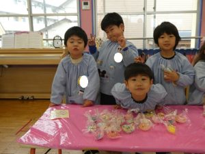 この日は、年中・年少・年長少々・みつばち組でお店屋さんごっこを行いました
